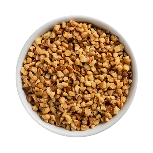 Granillo de nuez excelente para coberturas, inclusiones y texturizados en productos dulces y salados. Disponible en distintas medidas (desde 2-4 mm a 8-12mm).