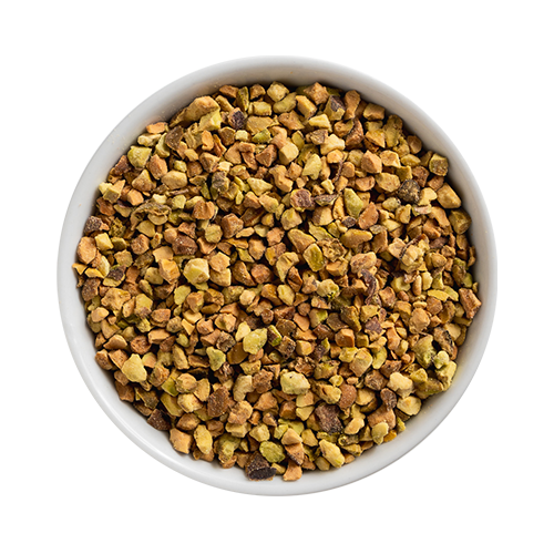 Pistacho troceado en cubos uniformes perfecto para coberturas y como topping en helados, repostería, pastelería y productos salados. Disponible en distintas medidas (desde 2-4 mm a 8-12mm).